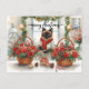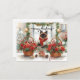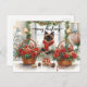 Katt arrangerar vinterblommor för julhelgen helg vykort