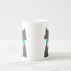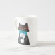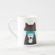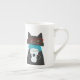 Katt av glasögon som håller kopp på kaffe benporslin mugg