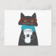 Katt av glasögon som håller kopp på kaffe vykort
