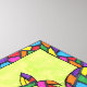 Dekorera väggarna i stil med den här färgstarka, unika folkkonsten. I den här upplyftande, visuella teckningen sitter den här unika och färgstarka katten mot bakgrund och blickar i grönten vår, och visar upp sina mosaikliknande markeringar med flera färgader som liknar nedfläckad glas. Hon omges också av ett detaljerat flerfärgat gräns som matchar hennes markeringar.