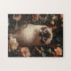 Katt av siamesisk Rosa, omgiven av blommor Pussel