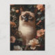 Katt av siamesisk Rosa, omgiven av blommor Vykort