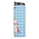 Den här termiska tumlaren flaska för behålla av kallet eller hetten är en blå och vit fläck med en lycklig vit mor-katt som bär en rosa polka med prickad båge sitta med tre kattungar som alla bär rosa bågar. Anpassa texten med mallen.