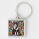 Katt bland blommor fyrkantig silverfärgad nyckelring