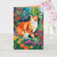 Vacker konst Bild på en söt katt bland blommorna. Lämplig för alla tillfällen. Tom insida för ditt eget meddelande.