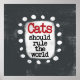 En söt typografisk design som säger "Katter ska styra världen". Det är svart och röd text på en vit rektangel med funky, lekfulla punkter som omger den sitter på en solid, texturerad grått-bakgrund.