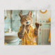 Katt borstar tänder i randiga pyjamas i badrummet helg vykort