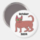 Föreställ dig en charmerande brun katt med päls och grönt ögon, som står med tillförsikt och svan är högt. Katten har en glansig vit magnet som på ett framträdande sätt visningar ord "oktober 2024" i ett typsnitt av snyggten. Kontrasten mellan riken brun av kattens päls och den skarpa vita av magneten ger en slående bild, medan den vibrerande grönten av kattens ögon tillför scenen en en aning spelsamhet. Den övergripande bilden ger en känsla av stollig och värme, perfekt för höstsäsongen.