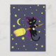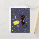En svart katt flyger över natten på en häxsond medan hon bär hatten! Den här designen är perfekt för Halloween-dekorationer! Anpassa eller anpassa den genom att lägga till egen text eller bilder.