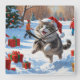 Katt från Sibirien som går i Snö med julklapp Fyrkantig Klocka
