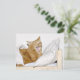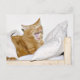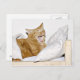 Orange tabby katt vaknade upp med en stor ywn i ett riktigt foto-vykort