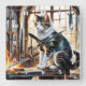 Katt i armor, omgiven av svärd vid gryning fyrkantig klocka