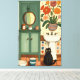 Katt i badrumsmålningen inspirerad av Maud Lewis Art Stil