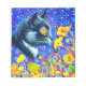 Anteckningsblock med Louis Wains målning Katt i Flowers hav (1860-1939). En svart och vit katt med gyllene öga luktar gula blommor. I lila är blåa blommor. En underbar gåva till kattälskare och engelsk konst.