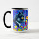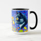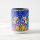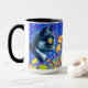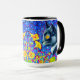 Kaffe Mugg med Louis Wains målning Kat i Flowers hav (1860-1939). En svart och vit katt med gyllene öga luktar gula blommor. I lila är blåa blommor. En underbar gåva till kattälskare och engelsk konst.