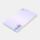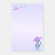 Cute bluish kattunge i hatt och flygande såser på ljusblå post-it-Notes.