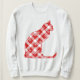 Sötskjorta i en silhuett för katt i sitta i helgdag av rödaktig och vit buffel plaid och utspridd snöflingor