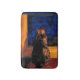 Den här badplatsen har en underbar golden, orange och brun tortoiseshell-katt sitta på en röd kudde och stirrar ut genom fönstret in i en midnatt blå himmel. Hon kastar en skugga på träfönsterklockan guld färgad.