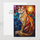 Katt i glasmosaik-stil, orange och vit fluffig kat kort