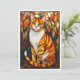 Katt i glasmosaikstil orange med blå ögon platt kort