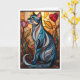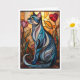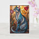 Katt i grått med blommor i glasmålningstill kort