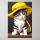 En söt katt med en gult hatt. Det här är en AI-skapad konst.