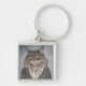 Katt i kläder fyrkantig silverfärgad nyckelring