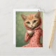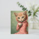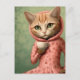 En katt i en rosa tröjklänning håller en kaffeklipp som skapats av AI