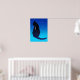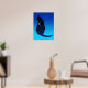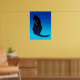 Poster i en silhuett av en elegant sitta-katt med ett stjärnmönster himlar och ett halvmånsfärande måne, på en kvällsblå, stjärnblå bakgrund - en kelestial-tematisk gåva till kattälskare