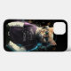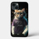 Katt i t-shirt, hörlurar och glas
