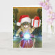 Katt i tomteluvan levererar julpresent kort