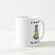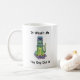 Kaffe Mugg med en illustration som visar en grumpigt tittar katt sitta med en kopp av plast fastsatt på huvudet som en hjälm. Det är ett humoristiskt, något sarkastiskt tag på katter, klumpighet och de där "det här skulle förstås hända mig" stunderna.