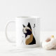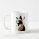 Kaffe mugg med en grafisk art-stil porträtt av en katt som balanserar elegans med enkelhet.