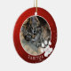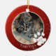 Presentera ett eller två foton av din katt på detta dubbelsidiga minnessmycke med röd bakgrund med snöflingor och stjärnor och ett kattavtryck. Personliggjort med namn och år. (FOTOTIPS: Välj ett foto med motivet i mitten och/eller förredigera det till en fyrkantig form och använd fliken ÄNDRA i avsnittet PERSONANPASSA.) Kontakta designern via Zazzle Chat eller makeitaboutyoustore@gmail.com om du vill att denna design ska ändras eller om du behöver hjälp med att överföra den till en annan smyckesmodell eller en annan produkt.