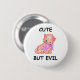 Knapp med en katt som kan ses som både förtjusande och lite "ond". Även om illustrationen i första hand är söt och nyfiken kan den lätt formuleras som "bedrägligt oskyldig" - den typ av konst som spelar på idén om att katter är lika delar som är lovliga och djävulska.