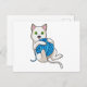 Katt leker med ull vykort