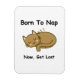 3-tums x 4-tums magnet med en bild av en sovande katt tecknad-stil. Den övergripande utformningen är enkel och lekfull ge och mysigt och avslappnad.