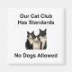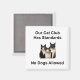 2-tums kvadratmagnet med "Vår katt-klubb har standarder - ingen hundar tillåten bild" som är lekfull och humoristisk. Det är en lätt design - perfekt för kattälskare som njuter av sarkastiska, "katter härskar, hundar drool" humor.