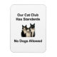 3-tums x 4-tumsmagnet med "Vår katt-klubb har standarder - ingen hundar tillåten" bild som är lekfull och humoristisk. Det är en lätt design - perfekt för kattälskare som njuter av sarkastiska, "katter härskar, hundar drool" humor.