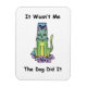 3-tums x 4-tumsmagnet med en illustration som visar en grumpy tittar katt sitta med en kopp av plast fastsatt på huvudet som en hjälm. Det är ett humoristiskt, något sarkastiskt tag på katter, klumpighet och de där "det här skulle förstås hända mig" stunderna.