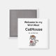 2-tums kvadratmagnet Cat House med humor som kommer från dubblan, ett tunga-i-cheek-skämt.
