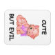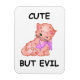 3-tums x 4-tumsmagnet med en katt som kan ses som både vacker och lite "ond". Även om illustrationen i första hand är söt och nyfiken kan den lätt formuleras som "bedrägligt oskyldig" - den typ av konst som spelar på idén om att katter är lika delar som är lovliga och djävulska.