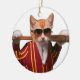 Katt med baseball fladdermus julgransprydnad keramik