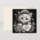 Här är ett sött kort med en svart-vit illustration av en katt med en ros och ett hjärta (förmodligen en hjärtformad chokladlåda eller ett valentinskort) som säger "Happy Valentine's". Katten med ros och hjärta-kortet har en vintagekänsla. Katten bär en gammaldags mössa! Det är ett fint kort att skicka till någon du älskar, speciellt på Alla hjärtans dag. En kattälskare eller person som gillar vintage eller retro-illustrationer.