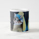Det här är en stor mugg, garanterat för det största te- och kaffet fläkt! Baserat på målningen "Girl with a Pearl Earring", som gjordes 1665 av Johannes Vermeer, har detta lysande magnifika mugg ett icke-så berömd kanadensiskt tabby katt som heter Bella. En dag tog hennes ägare ett foto av Mizz Bella i ungefär samma form som berömdens målning. Hon publicerade piken på Facebook och skrev: "Allt hon behöver är en pärlöronring." Ja. Nästa sak visste jag att jag målade Bella i samma tjänst och gav den avslutat produkten till Bellas ägare till jul 2019. Om du är en kattälskare, eller en konst älskare, eller båda (!), så ge du muggens pride ställe i köket!