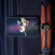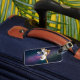 Katt med en planet och äta pizza bagagebricka