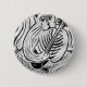 Linocut-tecknad av en katt som spelar en fiskgitarr, illustration i svartvitt.