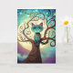 En katt sitta i träd på fullt med blått tårna och lila himlar fylld med stjärnor och blommor. Turkos grönt söt katt med färgfläckar. Original Modern Whimsical Digital Art-målning.