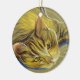 Katt med Guld Ögon - Pastel Teckning Julgransprydnad Keramik