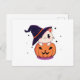 Katt med häxhatt i Halloween Jack-O-Lantern Vykort